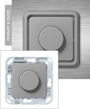 Светорегулятор поворотно-нажимной Jung CD для ламп накаливания 230в и обмоточных трансформаторов 12в, без нейтрали, серый