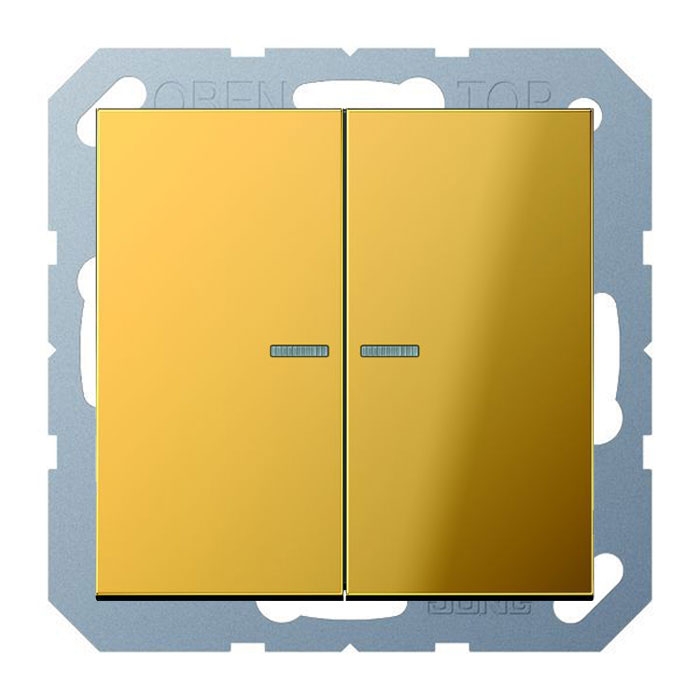Выключатель двухклавишный с подсветкой Jung LS, на клеммах, ip44 имитация золота