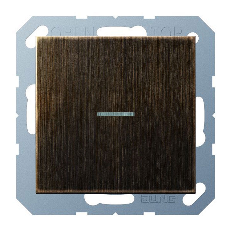 Выключатель одноклавишный перекрёстный с подсветкой Jung LS, на клеммах, латунь antique