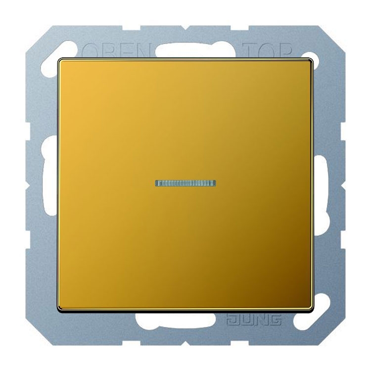 Выключатель самовозвратный одноклавишный проходной с подсветкой Jung LS, на клеммах, золото (96-я проба)